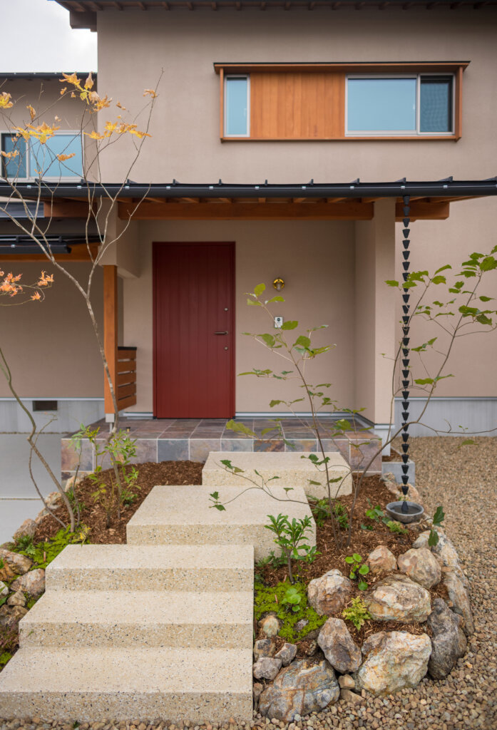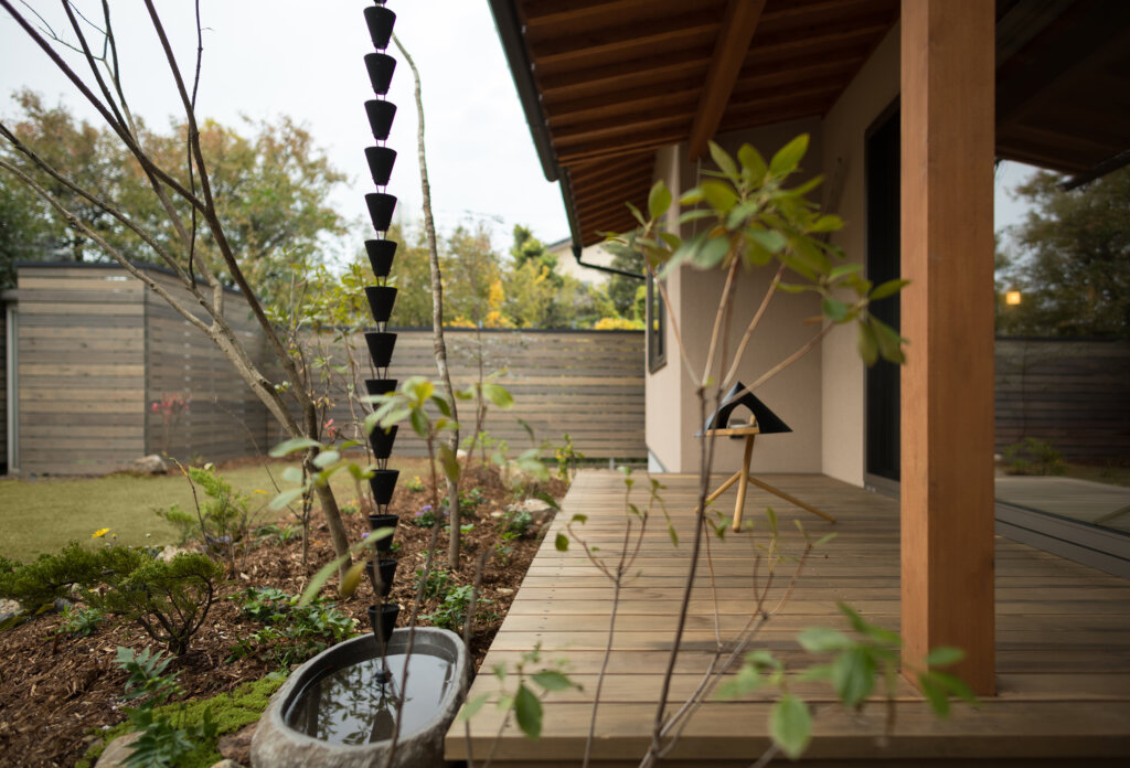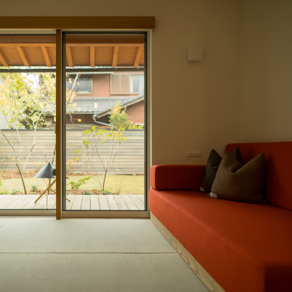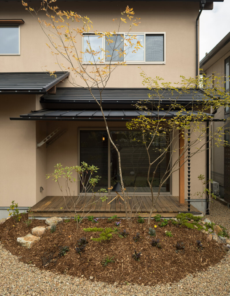 南面の増築部分を減築し、南面のプライベートな庭をしっかりとり確保、吹抜を家の中心に据え、