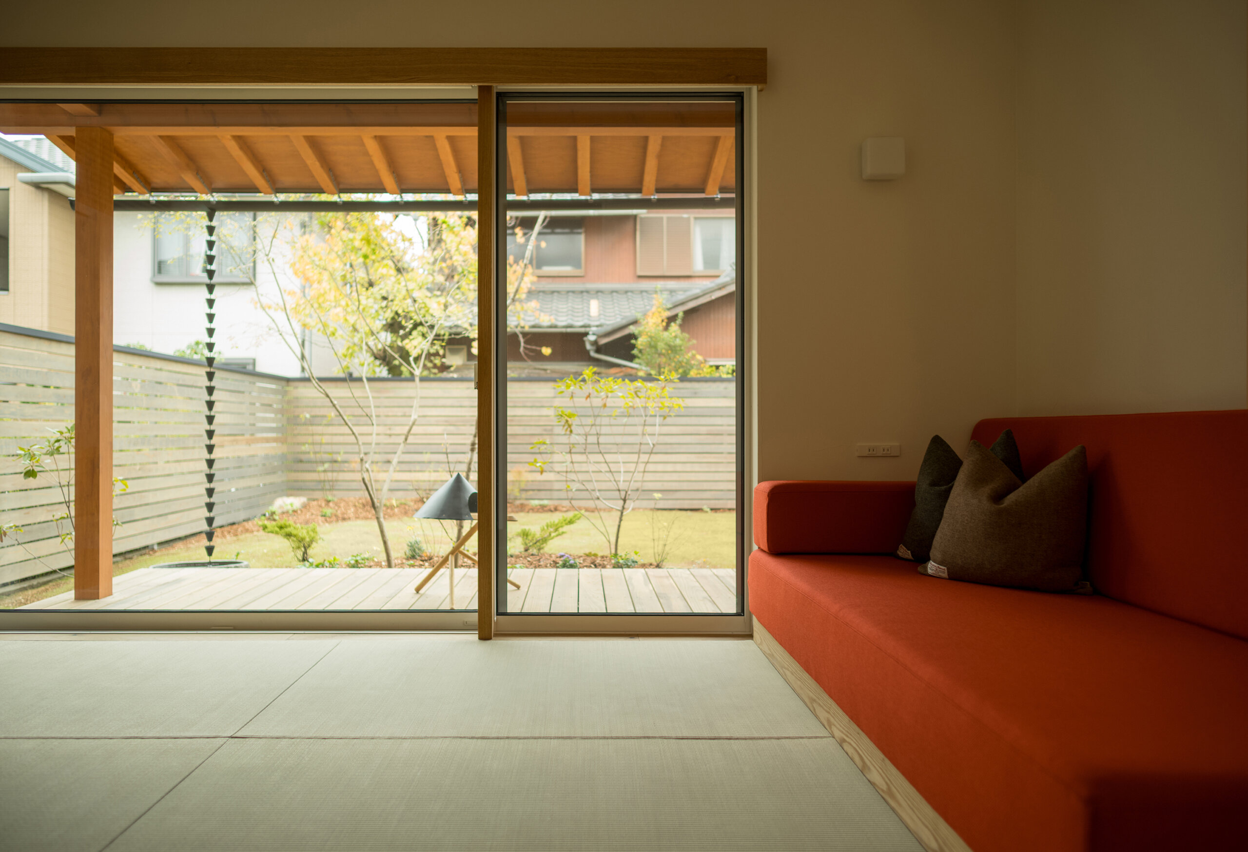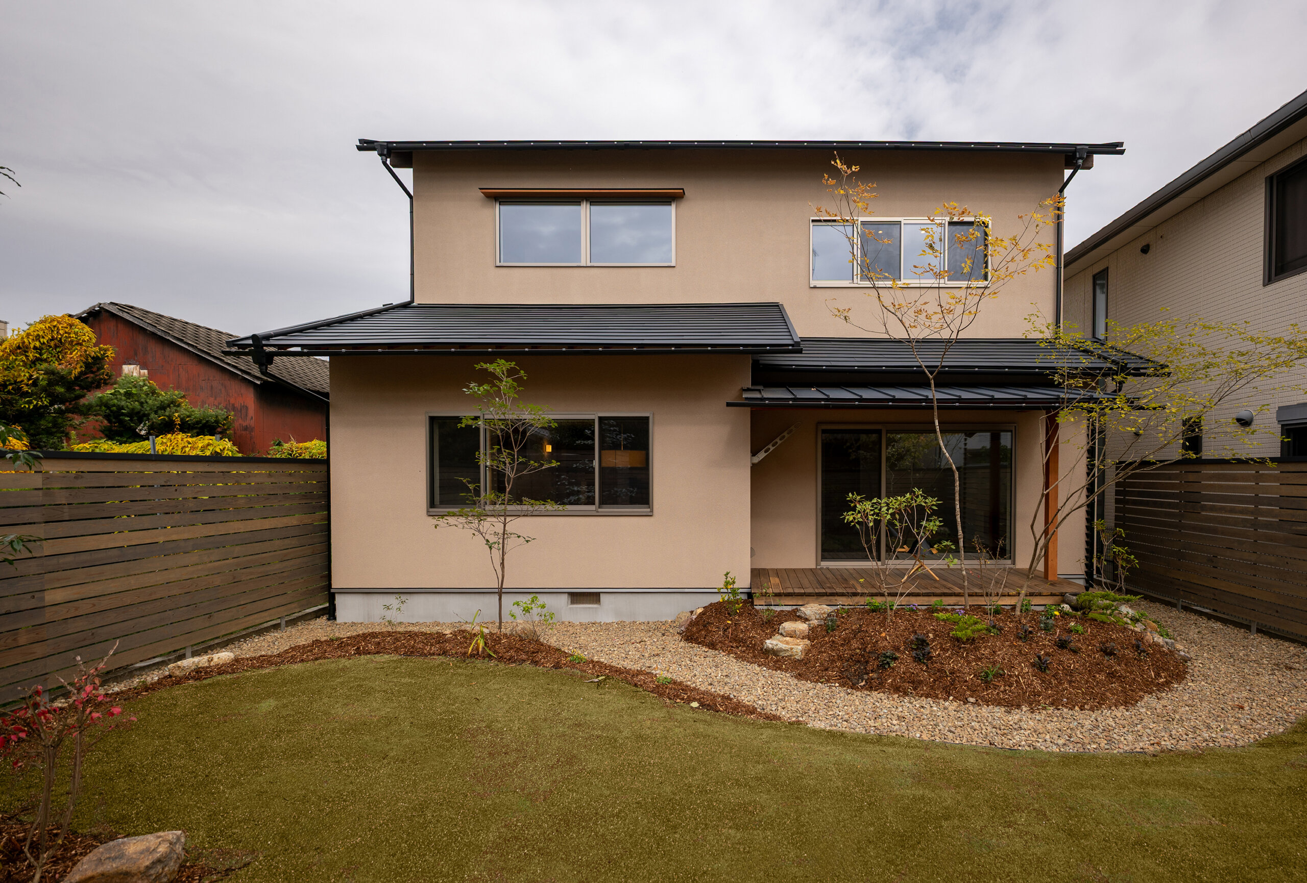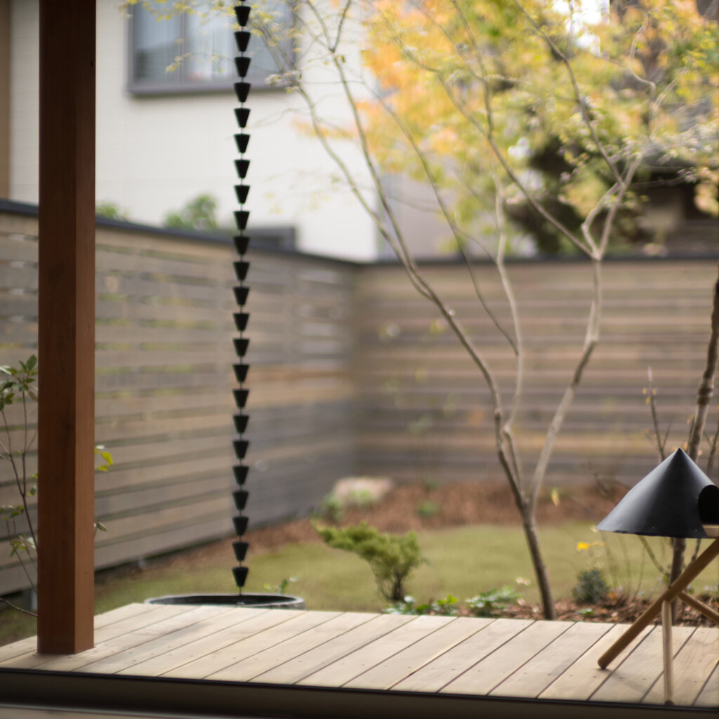 南面の増築部分を減築し、南面のプライベートな庭をしっかりとり確保、吹抜を家の中心に据え、