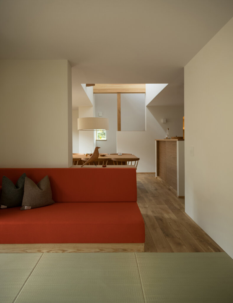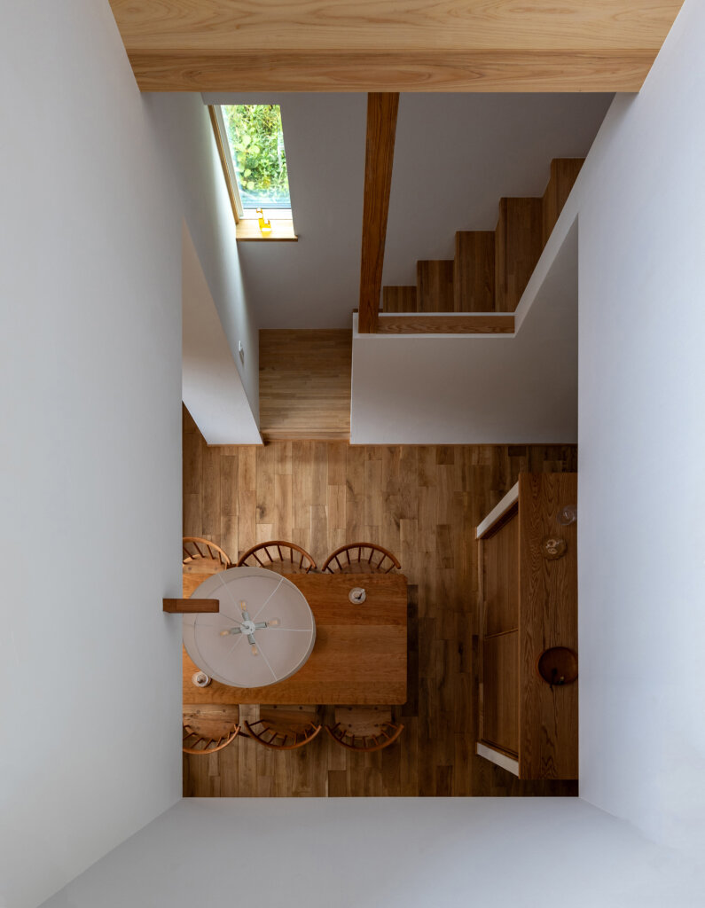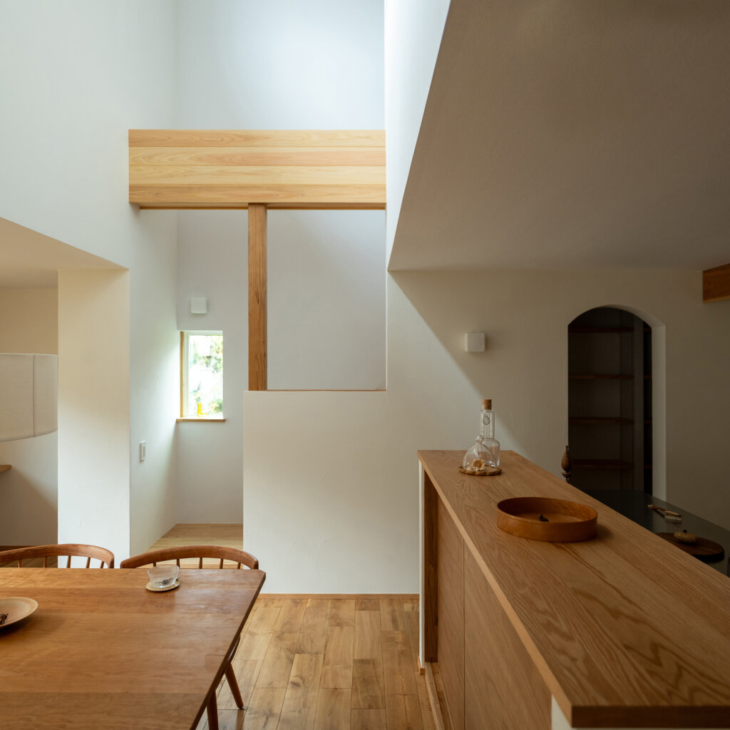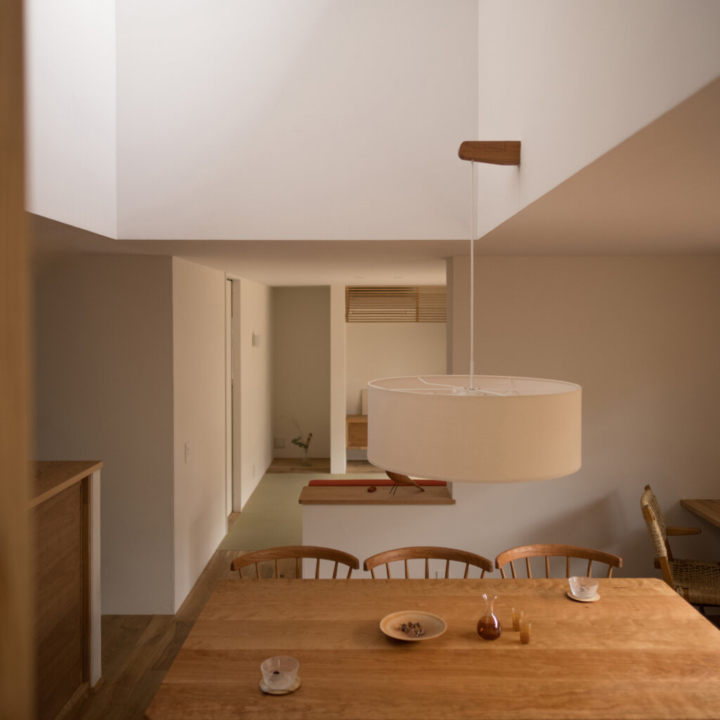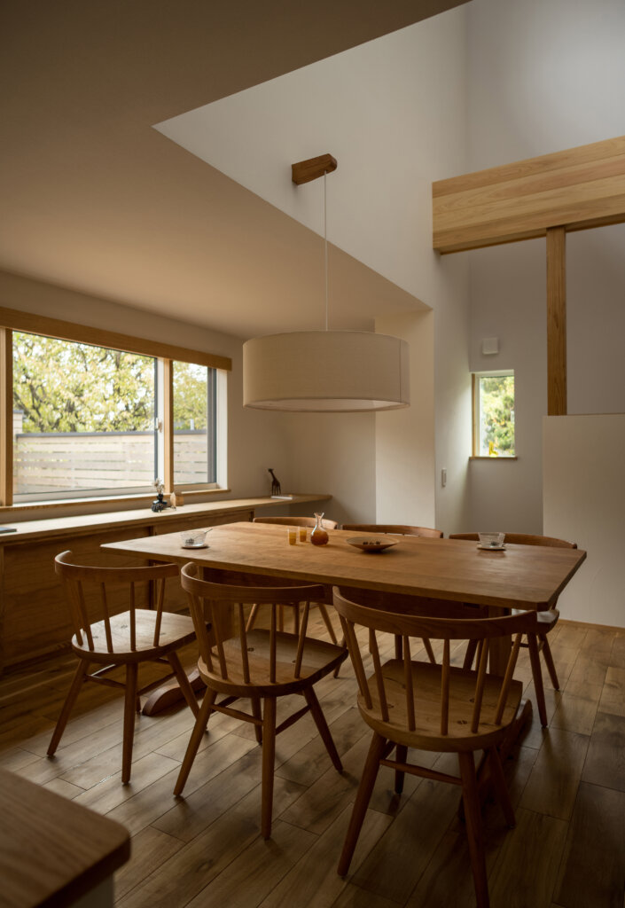 ハイサイドライトから降り注ぐ陽光と3D的なワンルーム空間により家中どこでも家族の雰囲気を感じる構成にしました。