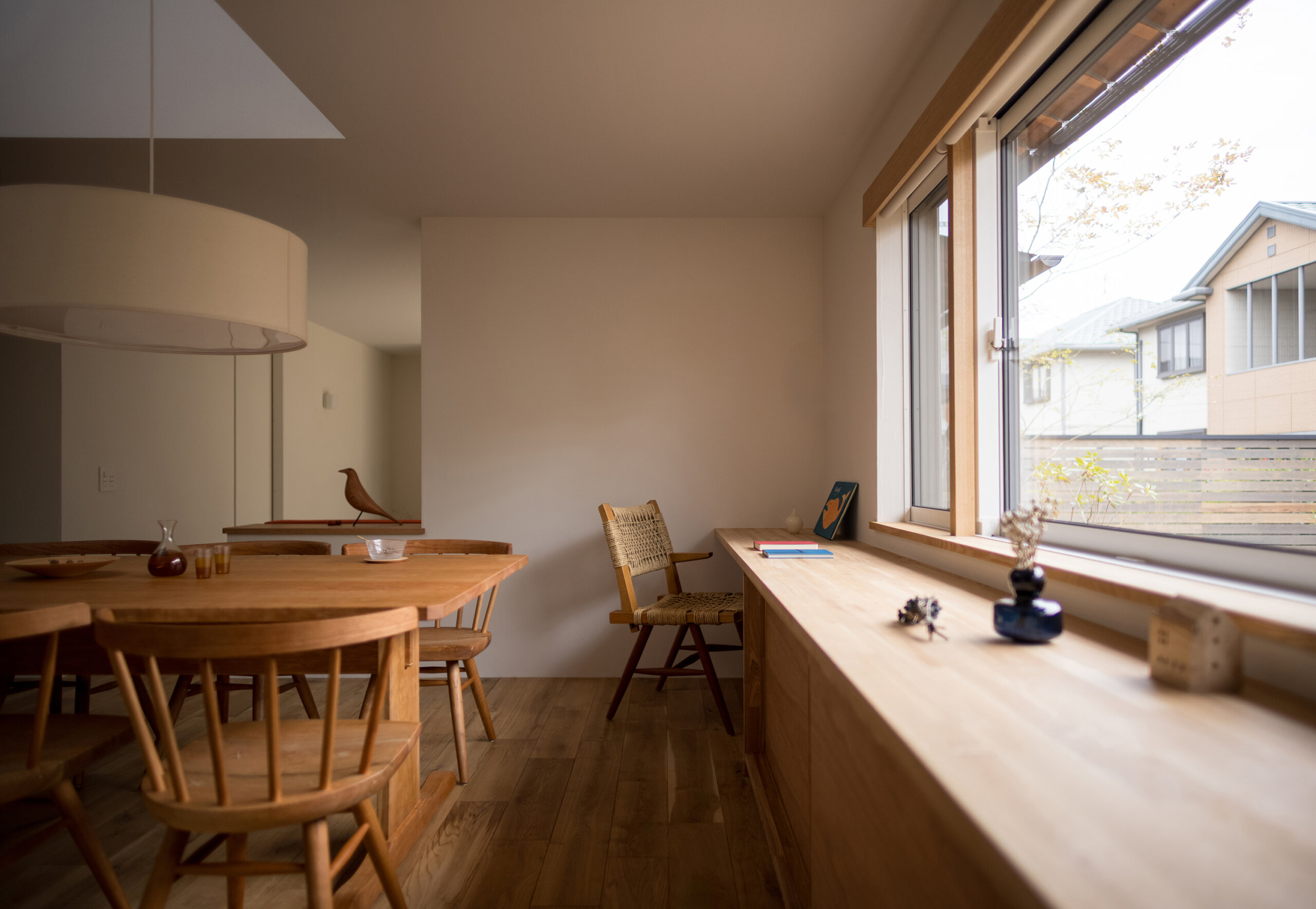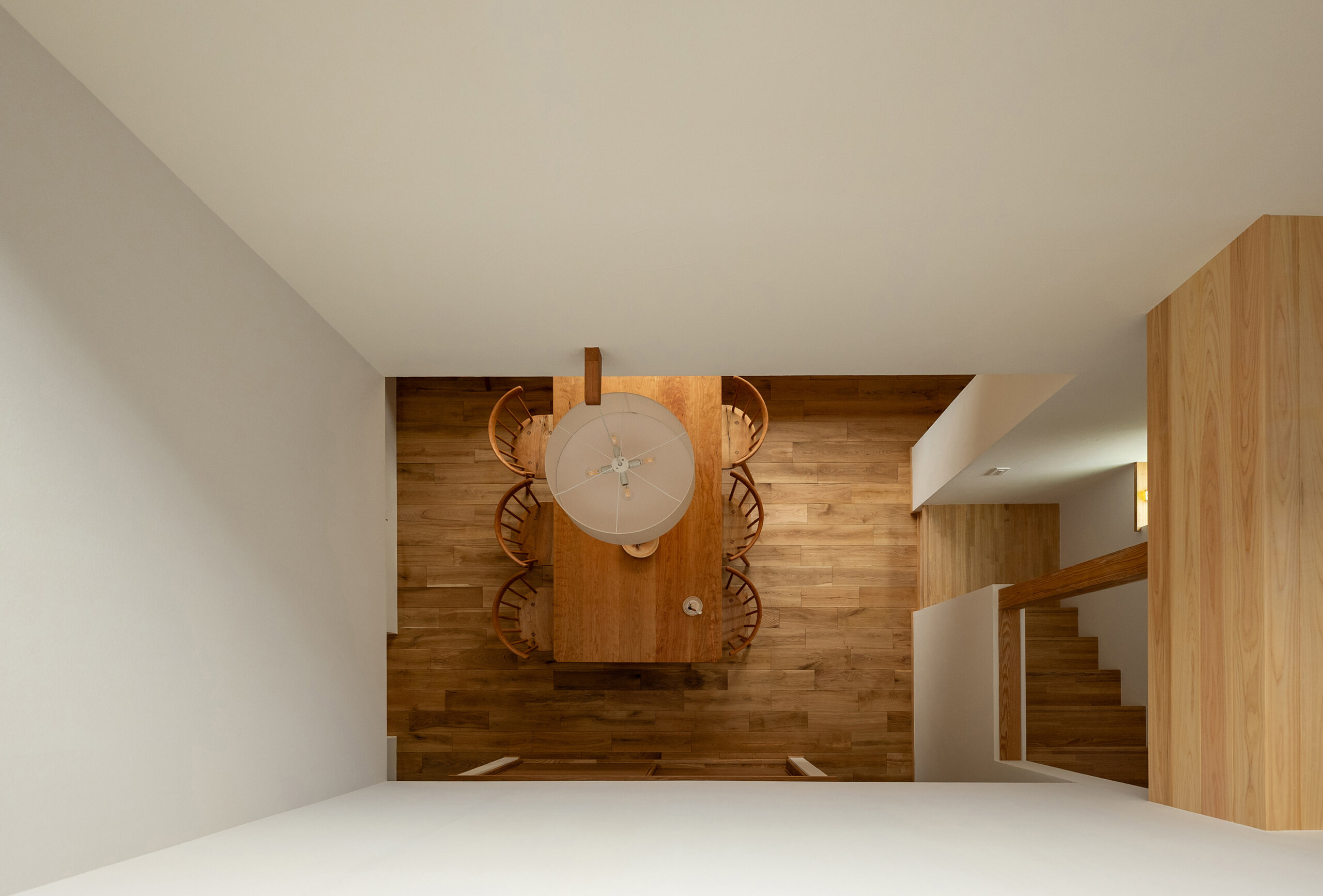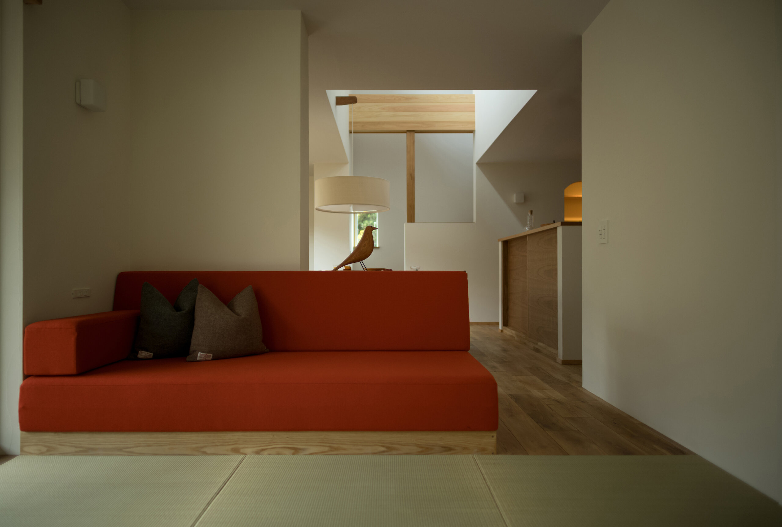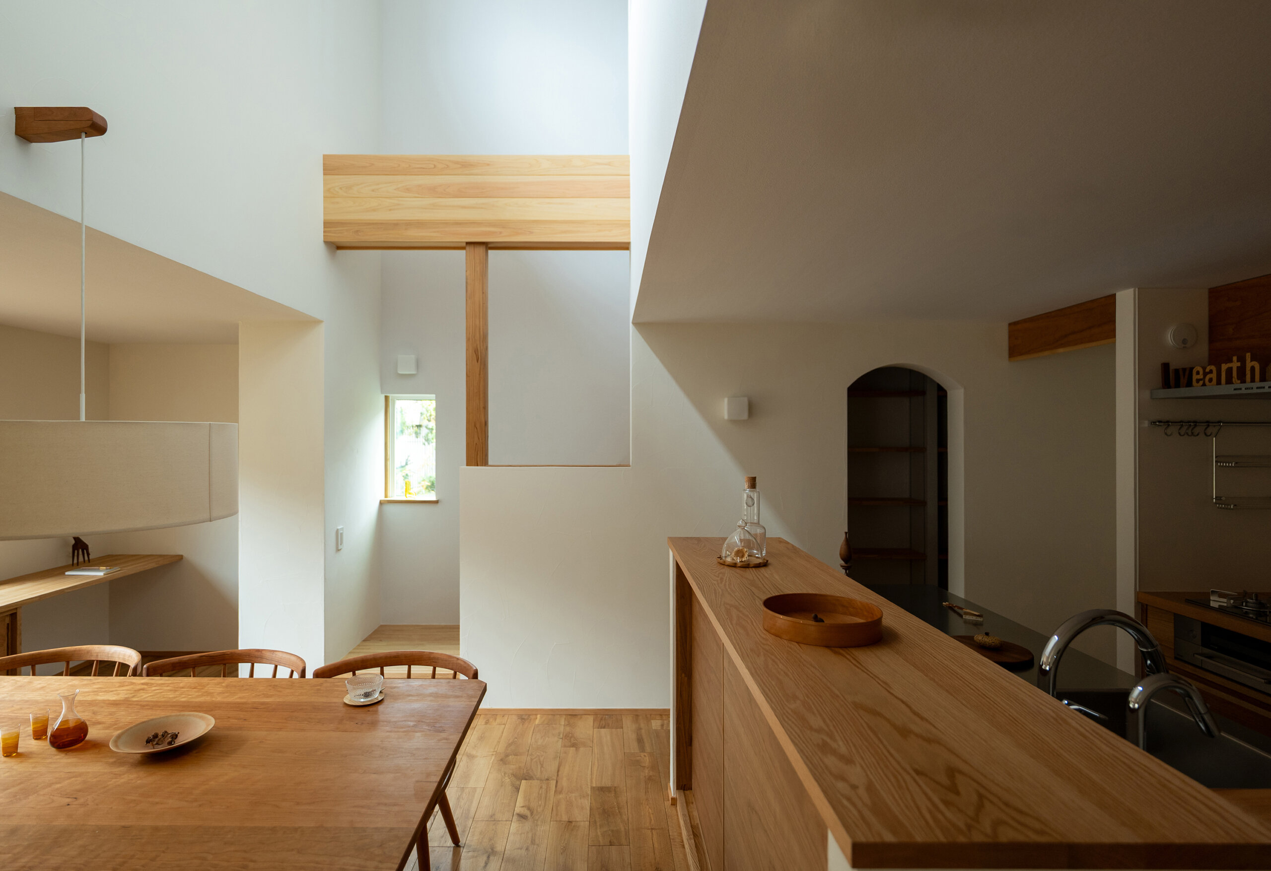 ハイサイドライトから降り注ぐ陽光と3D的なワンルーム空間により家中どこでも家族の雰囲気を感じる構成にしました。