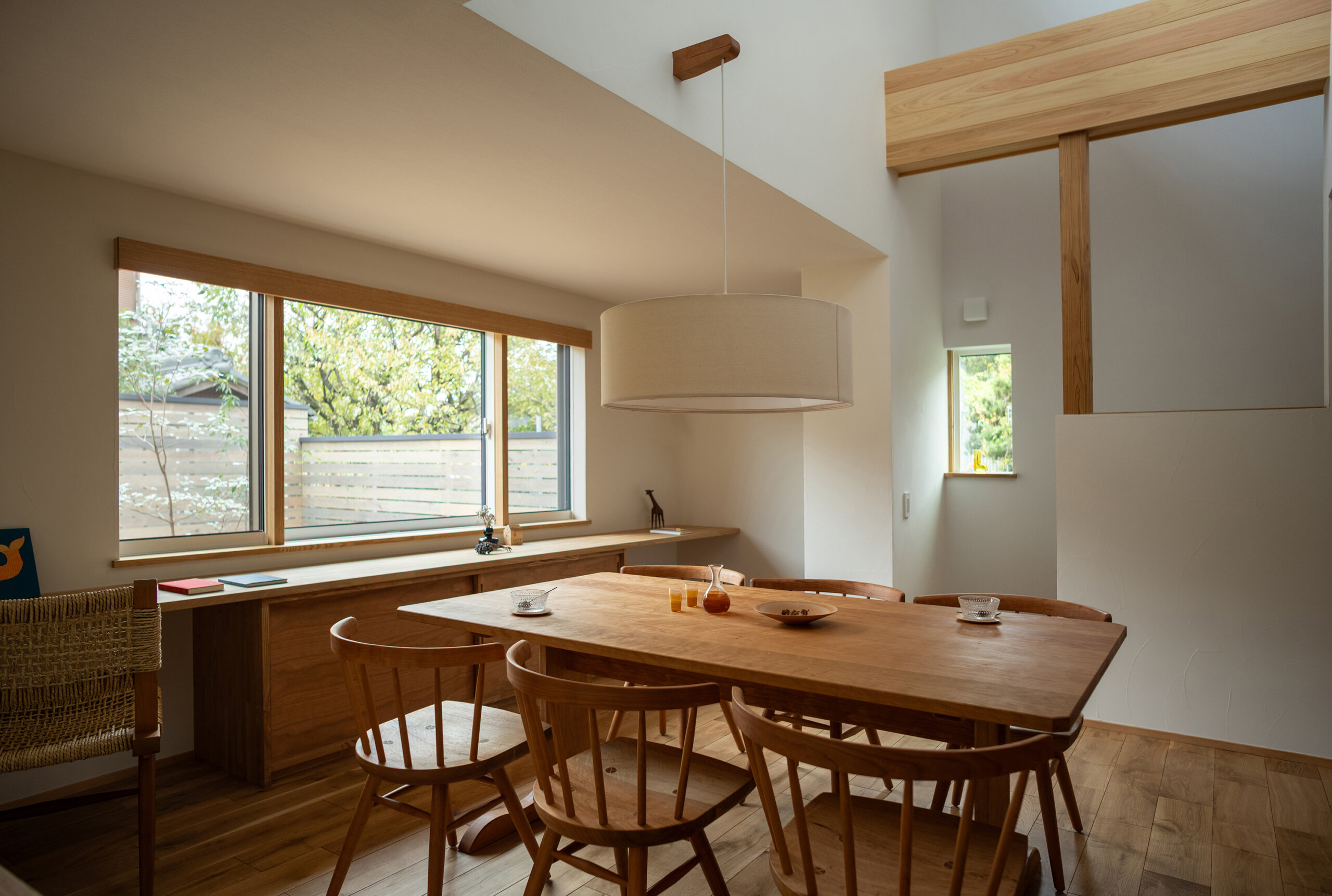 中央に据えた大きな吹抜と大きく確保した広い南の庭を見ながら、