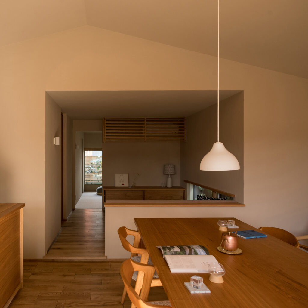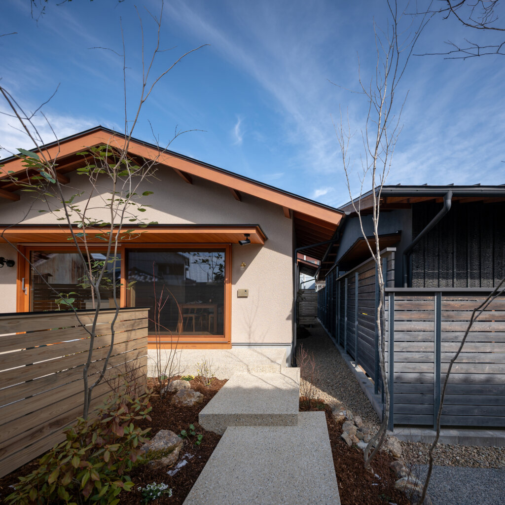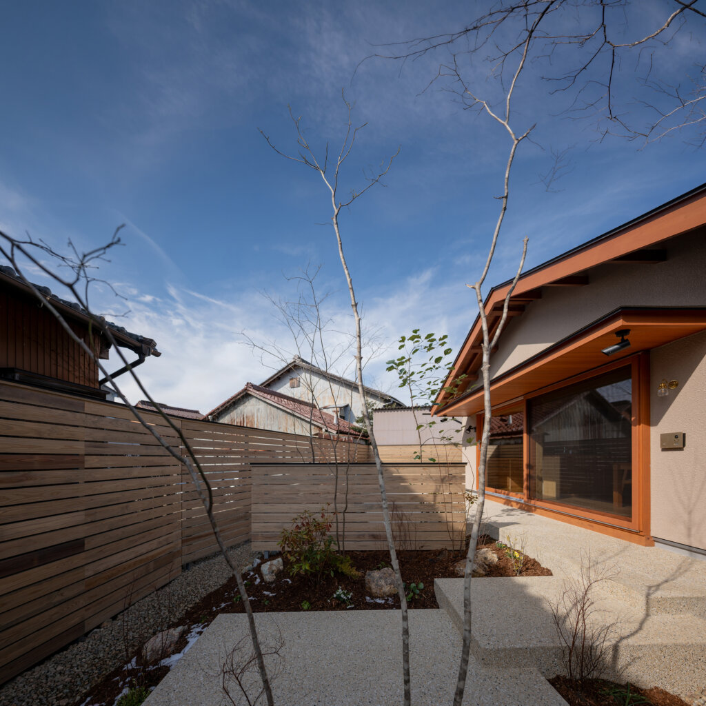 これらの庭が、平屋の内部へ柔らかく光と気配を流し込み、