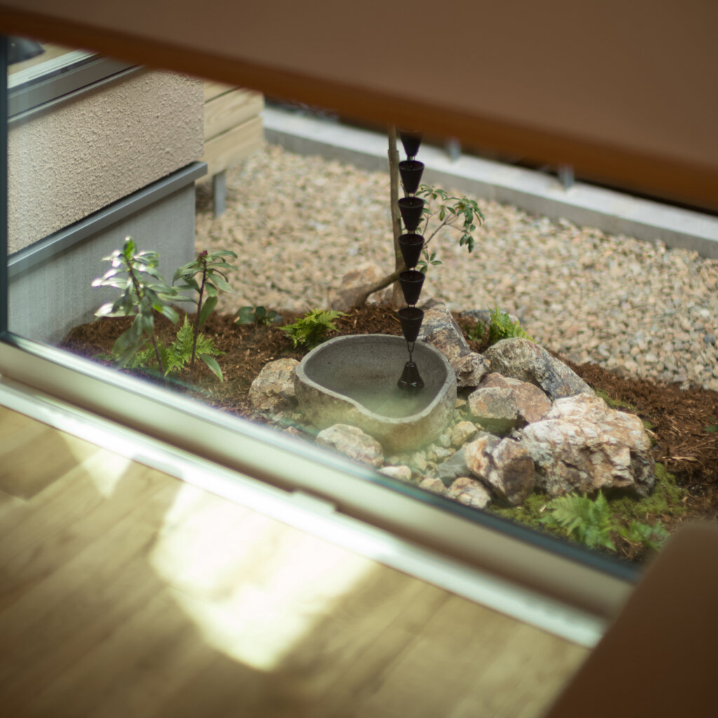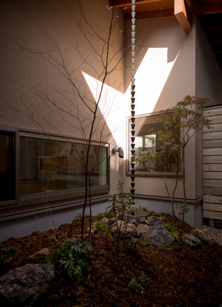 * 中庭:旗竿地で暗くなりがちな中央部に光と風を届け、住まいに奥行きをもたらす庭。